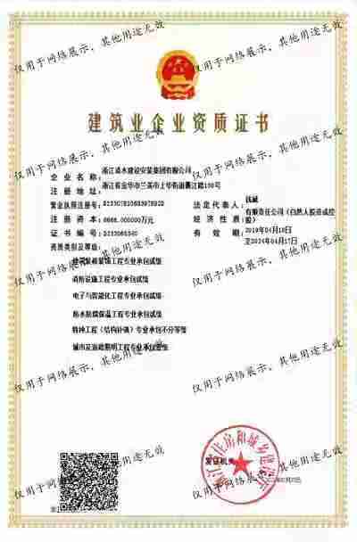 浙江清水建設安裝集團有限公司成立于2013年,注冊資金6688萬元。集團具有消防設施工程專業(yè)承包壹級、城市與道路照明專業(yè)承包壹級、電子與智能化專業(yè)承包壹級、建筑裝飾裝修專業(yè)承包貳級、防水防腐保溫專業(yè)承包貳級、市政工程施工總承包貳級、機電工程施工總承包貳級、建筑工程施工總承包貳級、電力工程施工總承包貳級、機電工程專業(yè)承包貳級、環(huán)保工程專業(yè)承包貳級、古建筑工程專業(yè)承包貳級、特種工程結(jié)構補強專業(yè)承包、建筑施工勞務作業(yè)專業(yè)承包(憑建筑業(yè)企業(yè)資質(zhì)證書經(jīng)營